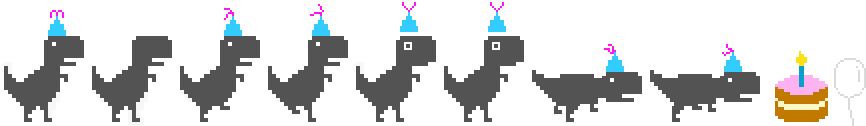 經典恐龍遊戲的慶祝版——生日蛋糕、派對帽、氣球——為慶祝 Chrome 10 週年推出。